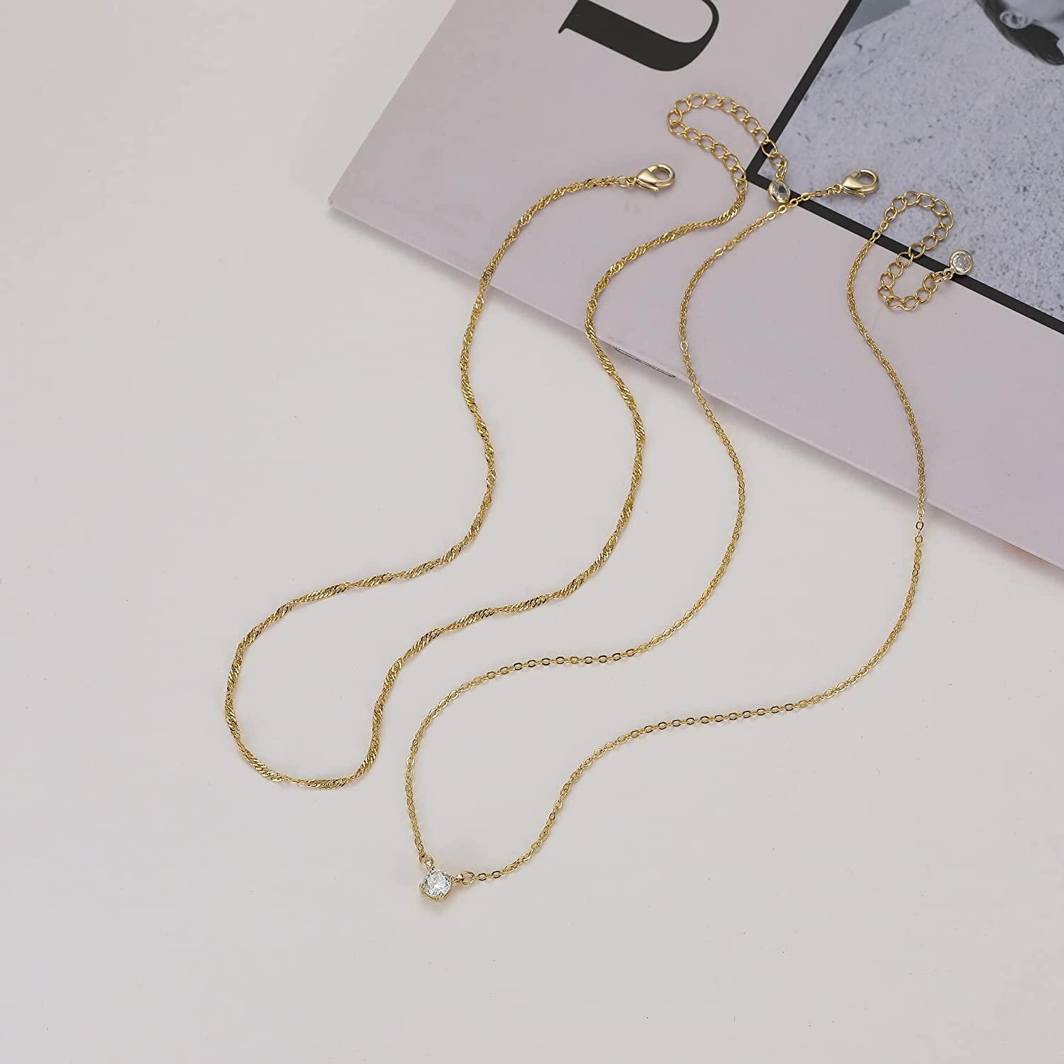 Simple Layered CZ Diamond Gold Necklace